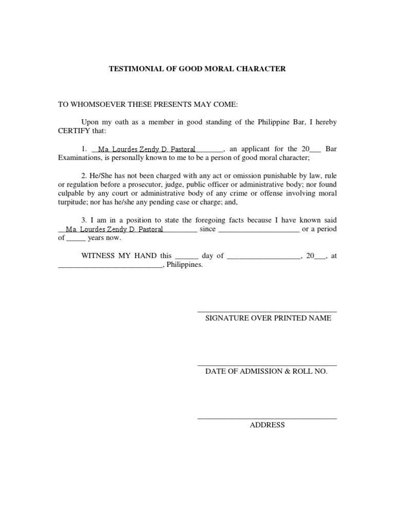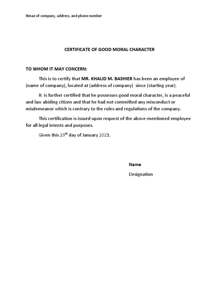 How to edit and draw up good moral character certificate sample online. Easy to use word, excel and ppt templates. Here are some examples of people who might need your character reference to state their moral character: